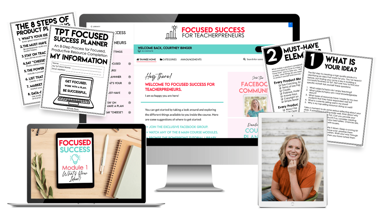 I knew I wanted to take my business to the next level, so I purchased the Focued Success course. It has been the best investment! In the past year, my sales have continued to grow and I owe it to following the teps in Shelly's course. It is easy to work through, full of practical ideas, and helps keep me focused on making the best products I can for teachers.